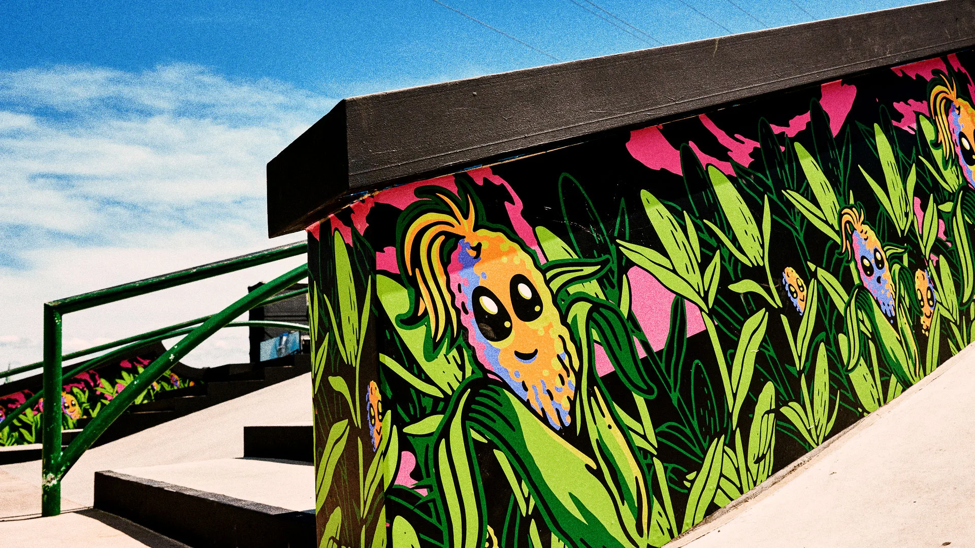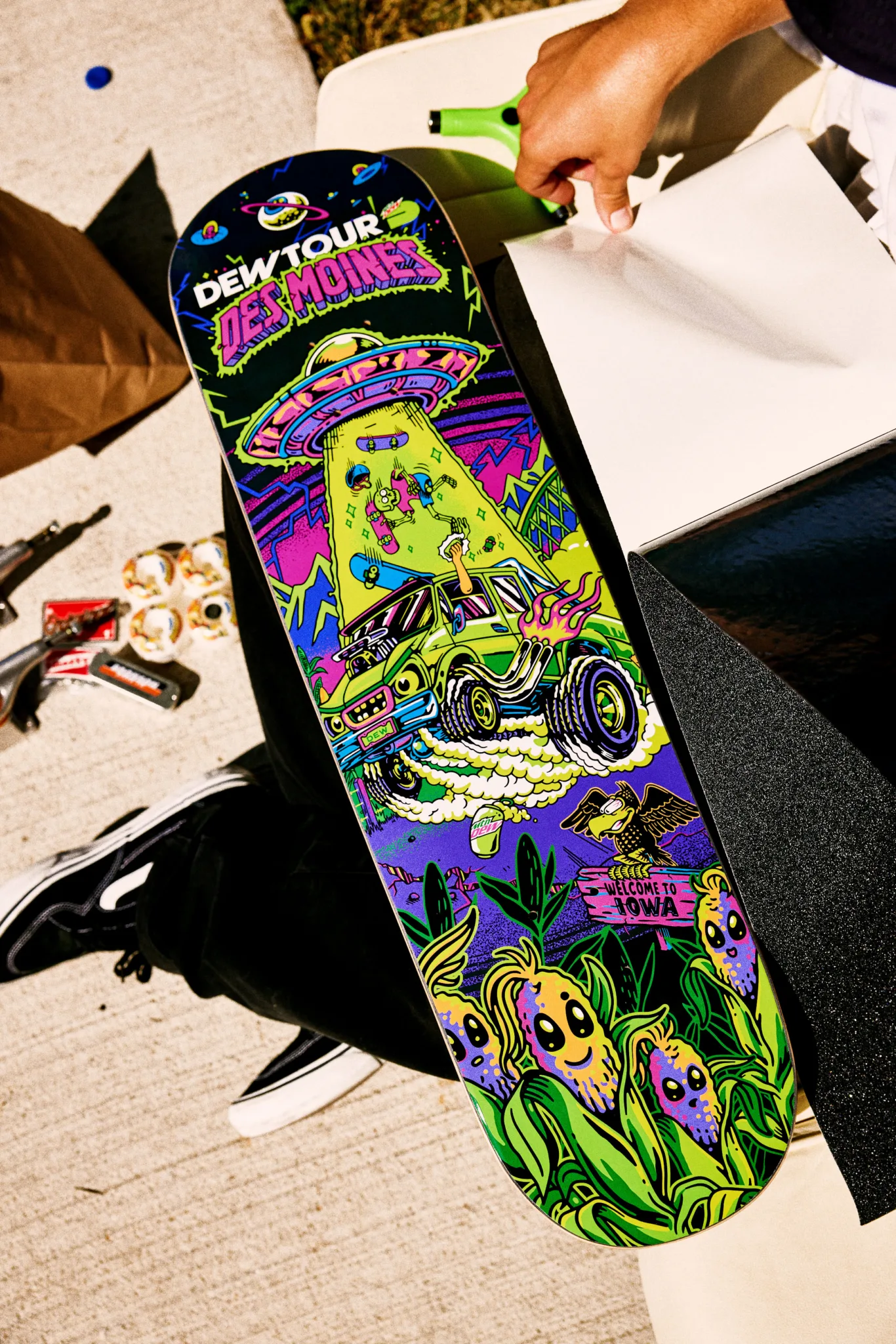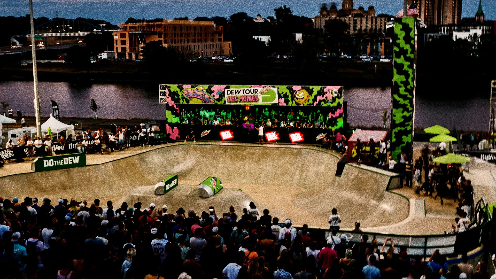 This summer our skate dreams came true. Burn & Broad partnered  with our friends at Mountain Dew to create the brand identity and visual language for Dew Tour ’22 pro skateboarding competition and festival. For the event’s launch, we created a fictional world of characters inspired by skateboarding, Mountain Dew and Des Moines.