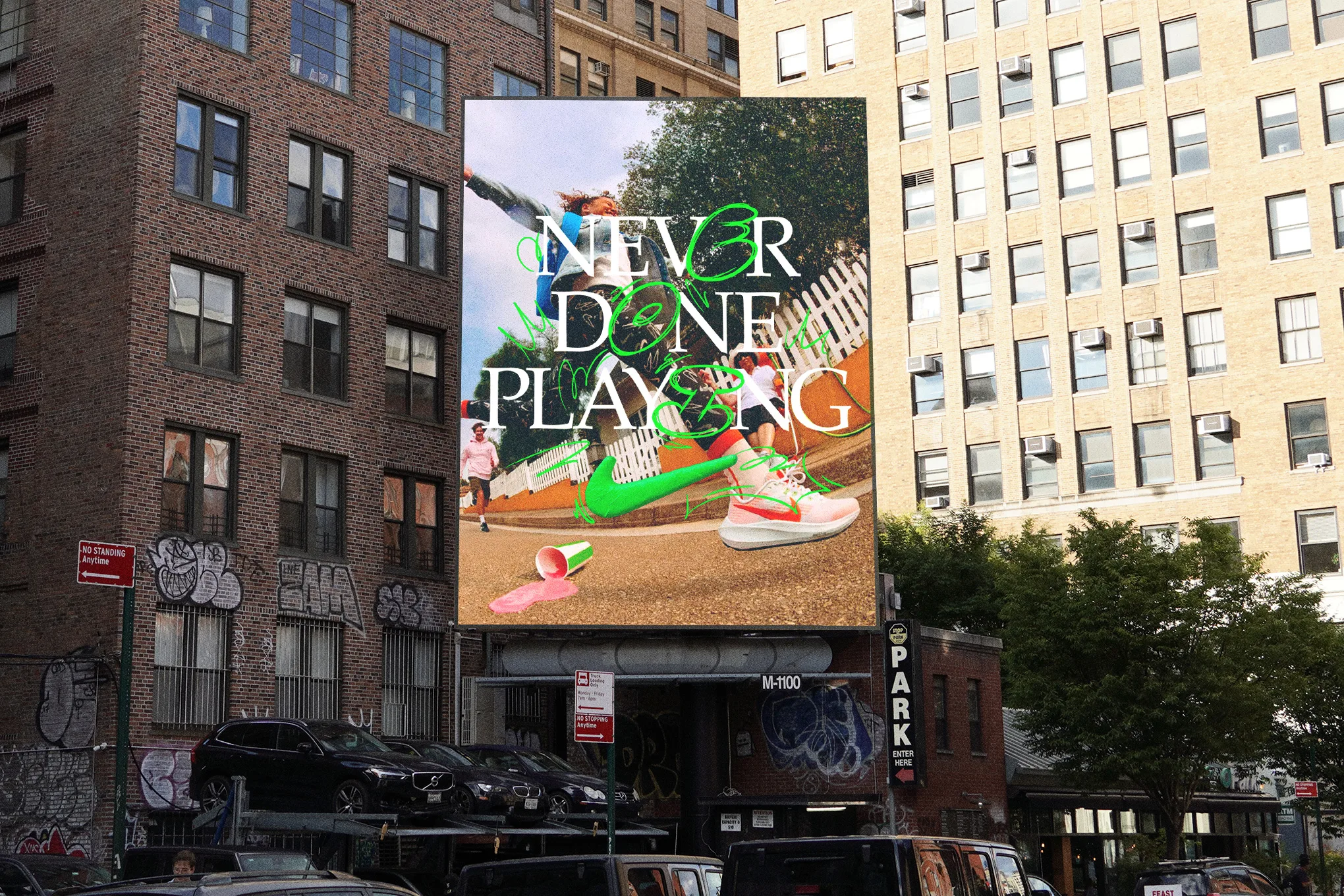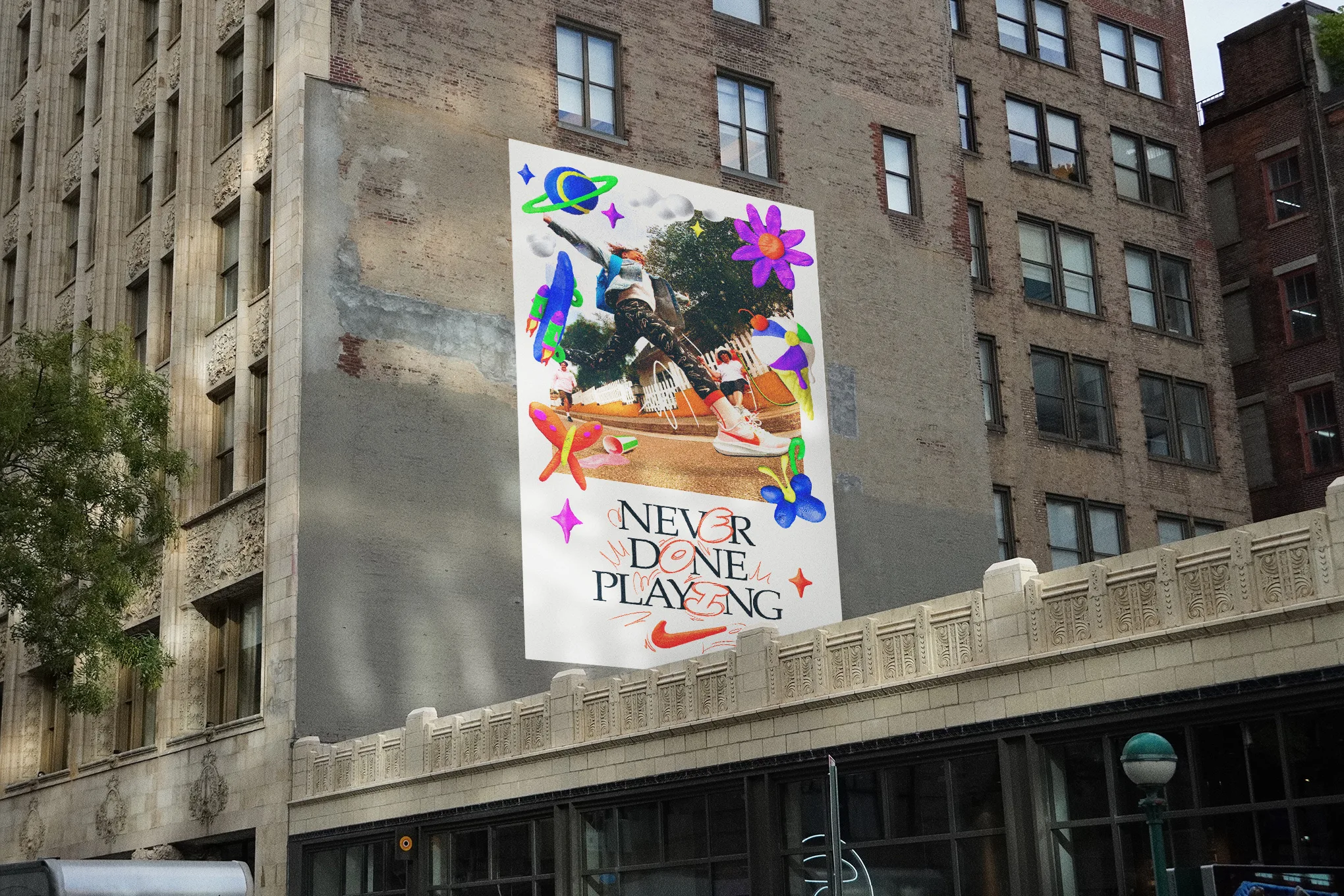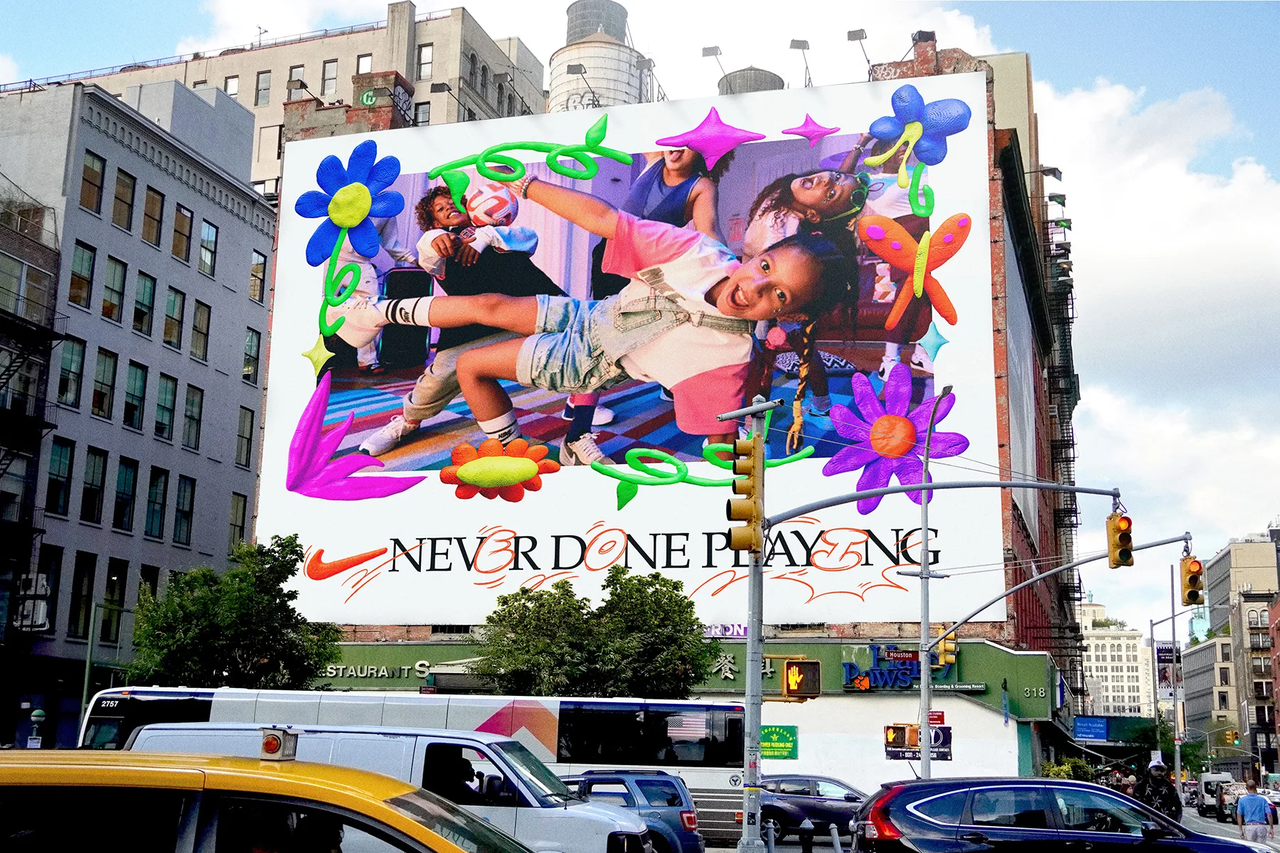 Never Done PlayingNike Kids approached Burn & Broad to build a flexible visual brand identity for the playful and imaginative “Never Done Playing” campaign. We developed a series of visuals that capture the one-of-a-kind creativity, attitude and personality of a one-of-a-kind kid. Burn & Broad collaborated with Nike Kids, creating a weird, imaginative and surreal 3-Dimensional graphic world intertwined with playful photography and film shot by Soursop.