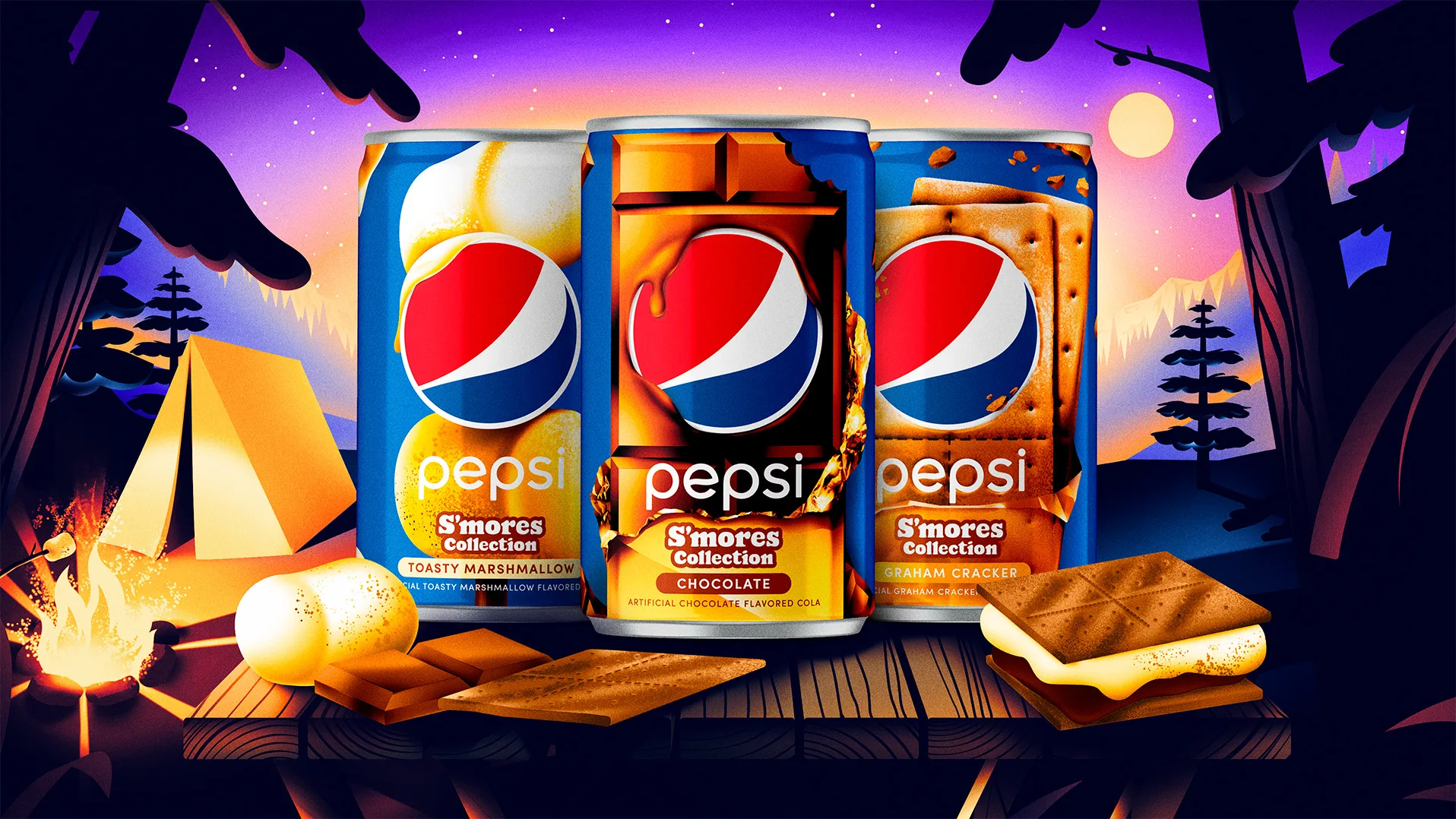 S'mores CollectionBurn & Broad collaborated with the Pepsi Design & Innovation Center to design packaging, campaign visuals, and animation for the launch of the Pepsi S’mores Collection. This limited-edition design project included a custom S’mores kit, where fans could mix three distinct flavors to create the ultimate Pepsi S’mores experience.